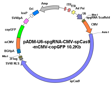 载体编号: pAD100004-KO 载体抗性: AMP 启动子: U6,CMV,mCMV 蛋白标签: 3×Flag 荧光蛋白: copGFP 功能: 敲除 价格: 不出售