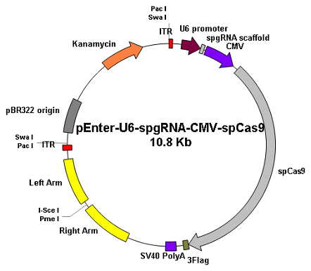 载体编号: pAD100005-KO 载体抗性: KANA 启动子: U6,CMV 蛋白标签: 3×Flag 功能: 敲除 价格: 3880