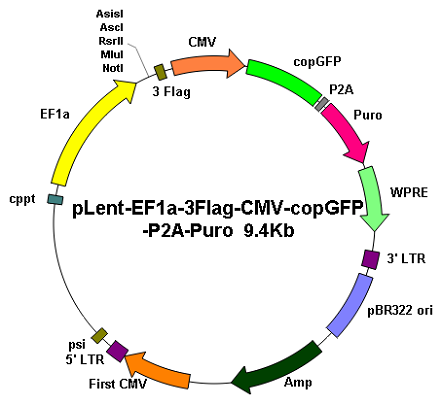 载体编号: pLV100003-OE 载体抗性: AMP 启动子: EF1a,CMV 蛋白标签: 3×Flag 筛选抗性: Puro 荧光蛋白: copGFP 功能: 过表达 价格: 不出售